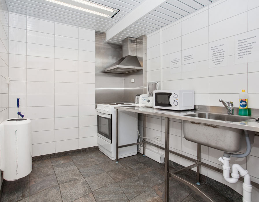 Im Sanitärhaus gibt es Toiletten, Dusche (Duschautomaten, Kr. 12 für 6 Min., Kr. 20 für 12 Min.), Gemeinschaftsküche mit Backofen, Mikrowelle, Toaster und Wasserkocher.
