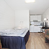 Room with shower, WC, kitchenette, cable TV, duvets and pillows. Approx. 15–18 m2. Most rooms have space for an additional bed.